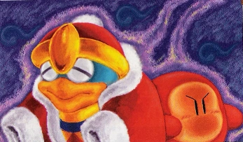 In Kirby's Adventure and its remake, Dedede has broken up the fabled Star Rod and removed it from the Fountain of Dreams, giving him full control over the fountain. This leaves the people of Dream Land unable to dream, and Kirby is dispatched with the task of recovering all the pieces and punishing the king for his selfish actions. In a key plot revelation, defeating King Dedede makes it apparent that he was actually trying to protect Dream Land from the Nightmare that took residence in the fountain, and even goes so far as to spit out Kirby into outer space so Kirby can defeat them. This is one of the few instances where he is seen as helping Kirby as opposed to hindering him. Nonetheless, this started a popular trend in the series where King Dedede would serve as the apparent final boss, but collecting all the pieces of the game's key item would reveal the true instigator of Dream Land's problems.