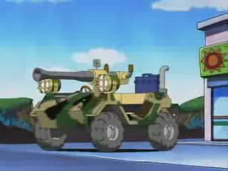 In the Japanese version of his dialogue, he tends to end his sentences with "-zoi" like he does in the original version of the anime.