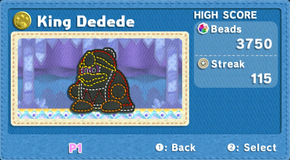 King Dedede appears once more in the game, following Kirby, Prince Fluff and Meta Knight back home to the yarn version of Dream Land, where his castle has been converted into a floating stronghold. There are also some King Dedede collectibles to be found such as a mini version of Castle Dedede and one of his robes. A doll of him can be bought from Chaise Woole in Quilty Square.