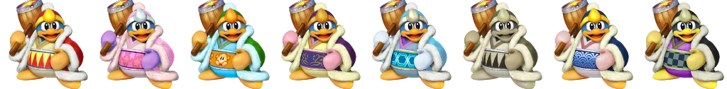 - On his sprites in Kirby's Dream Land, the back of Dedede's robes originally had a white "0" outline.
