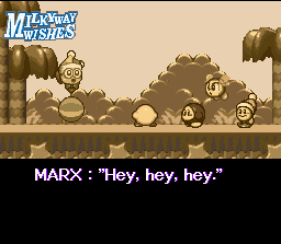 Marx appears in his original form, about to tell Kirby how to stop the fight between then Sun and Moon in Milky Way Wishes.